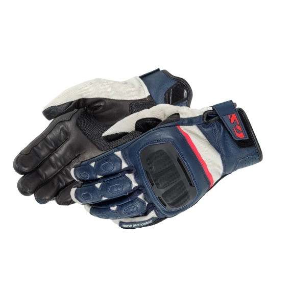 BMW GS Rallye-hanskene er den ideelle følgesvennen for alle motorsyklister som kjører offroad i sommertemperaturer. Overdelen av hånden er laget av elastisk stoff med en stor knokebeskyttelse og er designet for å tåle belastningen ved offroadbruk. Håndflaten er laget av kenguruskinn med forsterkninger som gir maksimalt grep.
