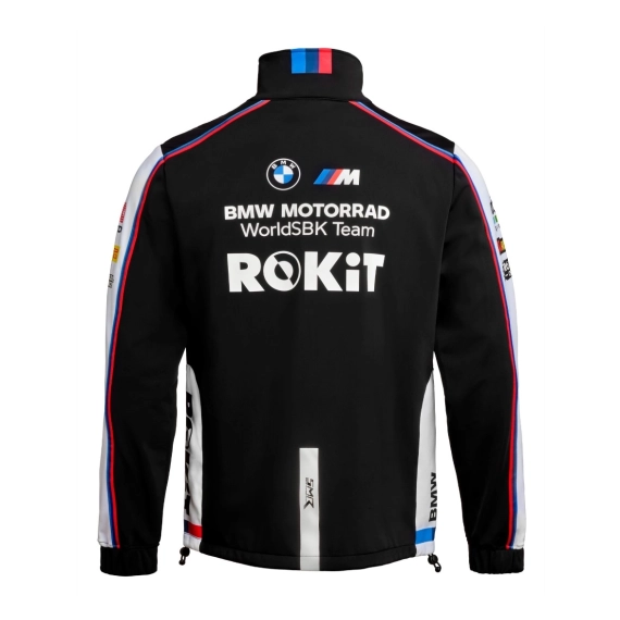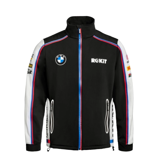 Tøffe racingfans vil trosse vind og vær – det er ikke noe problem med ROKiT BMW Motorrad WorldSBK Team softshelljakken. Jakken er ikke bare vindtett og vannavvisende, men også pustende, noe som gjør den til en ideell allsidig følgesvenn. Glidelåslommene på venstre og høyre side er også praktiske funksjoner.