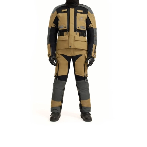 Rukka Adventure motorsykkeljakke for menn. Myk neopren i kragen. Ermeavslutninger med glidelåser og vanntette GORE-TEX innermansjetter. Stretchpaneler på brystet, under armene og på ryggen. Stropper på skuldrene og elastiske løkker bak på jakken for montering av vannblære. Avtakbar vanntett stormkrage i GORE-TEX Stretch-materiale. På brystet, FIDLOCK® magnetiske fester som er enkle å åpne med én hånd. Breddejustering på overarmen med trykknapper. Justerbar kant og ermeavslutninger med borrelåsstramming. Justerbart midjebelte. Skrittstropp og lang glidelås for bukser. 100 % pustende, vind- og vanntett GORE-TEX Pro 3-lags laminert til slitesterk CORDURA® skallstoff. Slitasjebestandige CORDURA® 1500D forsterkninger på skuldre og albuer. Stor lomme nederst på ryggen, kompatibel med en 1,5 L vannblære. Vannavstøtende dokumentlomme inni. To vannavstøtende nedre lommer med glidelåser og borrelås.